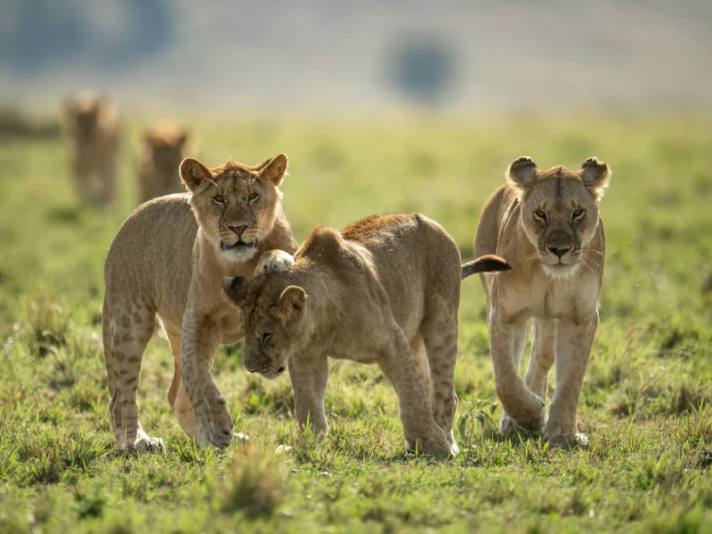Die Masai Mara gilt als Raubkatzenhauptstadt Afrikas. Hier leben viele Löwenrudel, oft sehr gut an Fahrzeuge gewöhnt. Die Tiere lassen sich hier besonders gut beobachten – auch bei der Jagd oder in Interaktion mit anderen Raubtieren wie Hyänen oder Geparden.